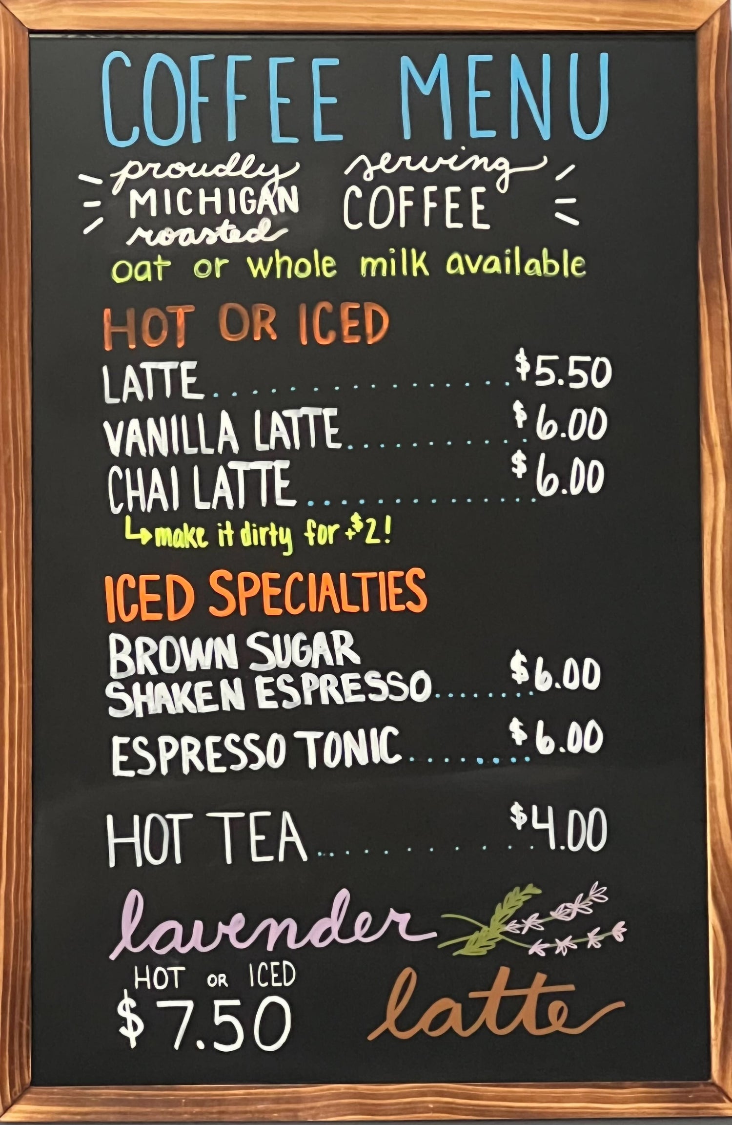 Hot or iced. Oat or whole milk. Beans proudly roasted in Michigan.