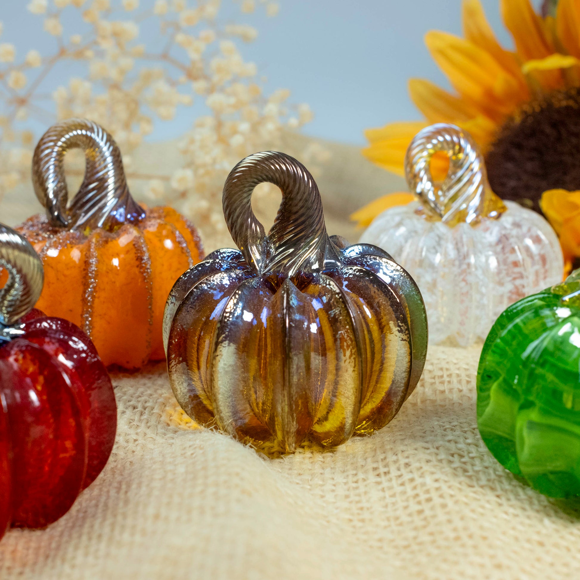 🌟 Celebrate the charm of autumn all year long with our newest release of handcrafted, handblown glass pumpkins—now available in nine stunning colorways. Each piece is a unique fusion of delicate artistry and seasonal magic, featuring vibrant swirls, sugared finishes, and luminous transparency. From frosty whites to molten metallics, these small pumpkin treasures are perfect for decorating mantels, gifting to loved ones, or collecting year after year. Each color has been thoughtfully designed to reflect its essence—evoking the beauty of nature, light, and the art of glass itself.