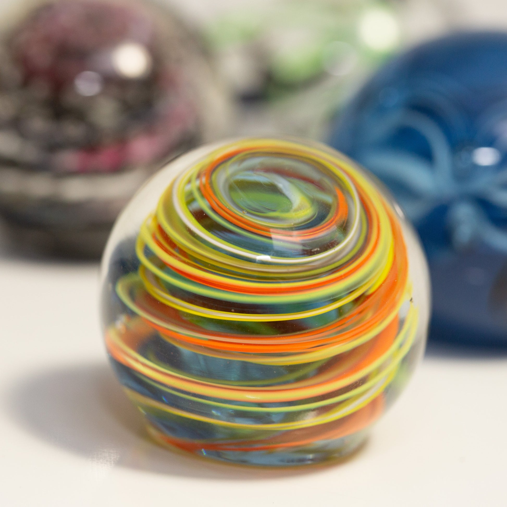 The Meditation Globe is an original product and class, designed by the founding creators of the Glass Academy. Whether you choose to display your globe on a sunny window sill or utilize it as a stunning paperweight, your one-of-a-kind handcrafted glass keepsake will bring you joy for years to come.