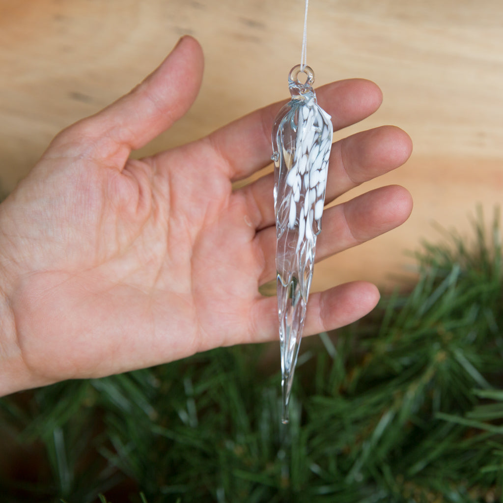 Our expert instructor will reveal the secrets behind the renowned Michigan Icicle™ through a live demonstration. As each student works with our instructors, you'll witness every 'blob' of molten glass transform into a stunning icicle. Utilizing specialized tools, gravity, and creative insight, you'll skillfully snip, pull, and stretch the molten glass 'blob' into its distinctive icicle shape. While adding a touch of white 'snow' to the molten glass surface is optional, it is often preferred to enhance the icicle's charm.